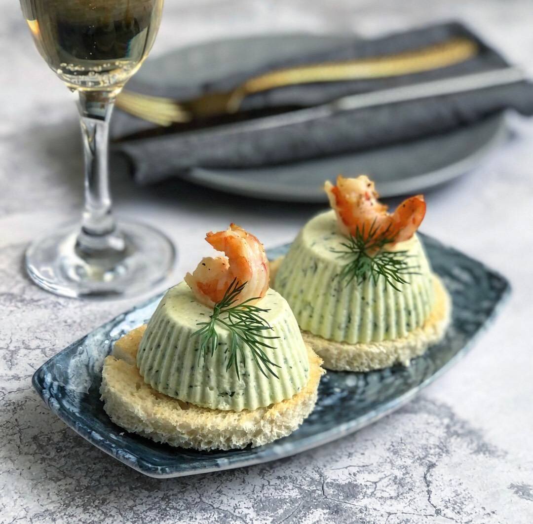 Этот нежнейший мусс чем-то напоминает соус тартар, поэтому отлично сочетается с креветками, слабосолёным или копчёным лососем, а также с сельдью. Идеальная закуска к шампанскому, а вариант с селёдочкой отлично подойдёт к крепкому алкоголю. Ингредиенты: длинный огурец, сливочного творожного сыра, сметаны, укропа, белого винного уксуса, желатина, сахара, растительное масло, соль, свежемолотый чёрный перец, Для подачи:, жареных крупных креветок, белый хлеб, укроп Способ приготовления: Залейте желатин 3 ст. л. холодной воды и оставьте на 10 минут для набухания. Налейте уксус в сотейник, добавьте сахар и перемешайте до полного растворения, добавьте желатин и поставьте на небольшой огонь, пока желатин полностью не растворится, но не доводите до кипения. Нарежьте огурец, положите в чашу блендера и измельчите в грубое пюре, добавьте сливочный сыр и взбивайте 10 секунд. Затем добавьте сметану, посолите и поперчите, перемешайте. Тонкой струйкой влейте желатиновую смесь и смешайте до однородности