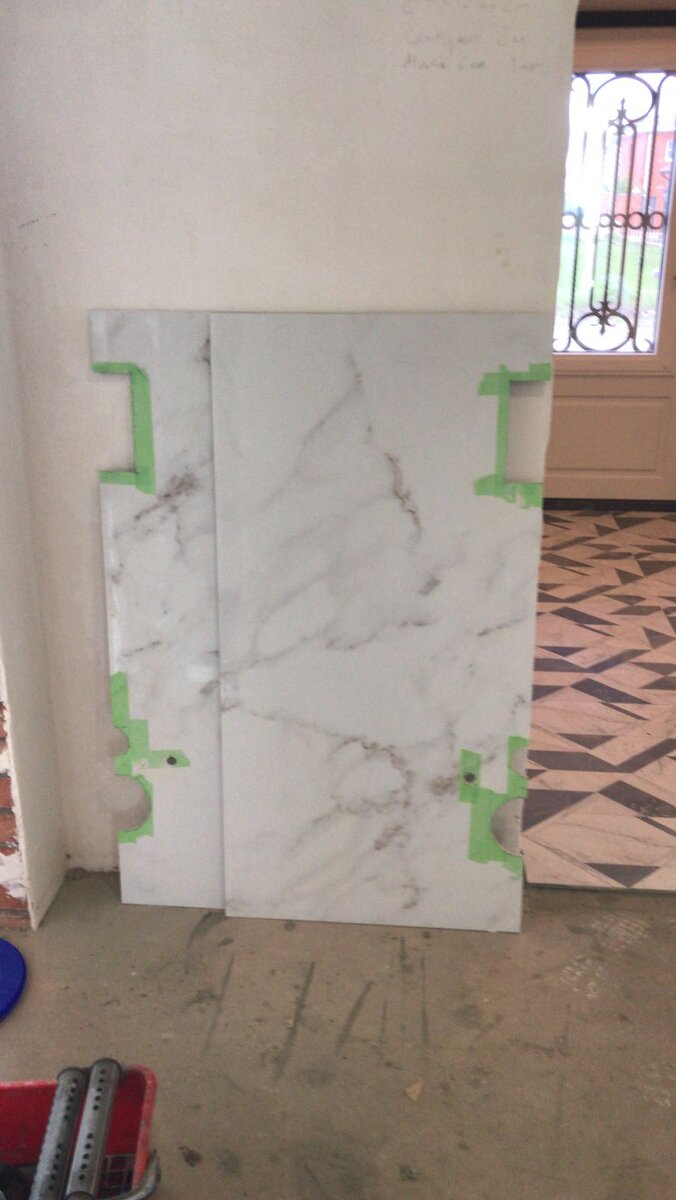 Начинаем подготовку плитки, размечаем, нарезаем. А это пол в котельной, тут уже все швы почищены, подготовлены к затирке, справа виден люк, на него также наклеена плитка. Зазор пришлось сделать 5мм, так как крышка люка имеет люфт. Позже сделаю там силиконовый шов. Затирка в котельной готова, на следующий день укрою полы плёнкой. В кухне работы по полу так же завершены, нанесена затирка. Завтра накрою плёнкой и картоном. Теперь идём в ванну. Там самый сложный пол, укладка ковра всегда очень трудоёмкий процесс. Очень много чистовой резки, а керамогранит в этот раз попался очень сложный. Керамогранит индийский, двойной закалки, красивая стеклянная поверхность это плюс, но вот порезать его механическим плиткорезом без проблем просто не возможно, при разломе отлетают углы по 3-4 мм. Приходится резать электрическим плиткорезом с запасом 3мм и шлифовать каждый раз. Вот шлифую, режу, шлифую, режу, а сам думаю - не давно один клиент в ответ на мой прейскурант мне написал, - "ну вы прямо вс