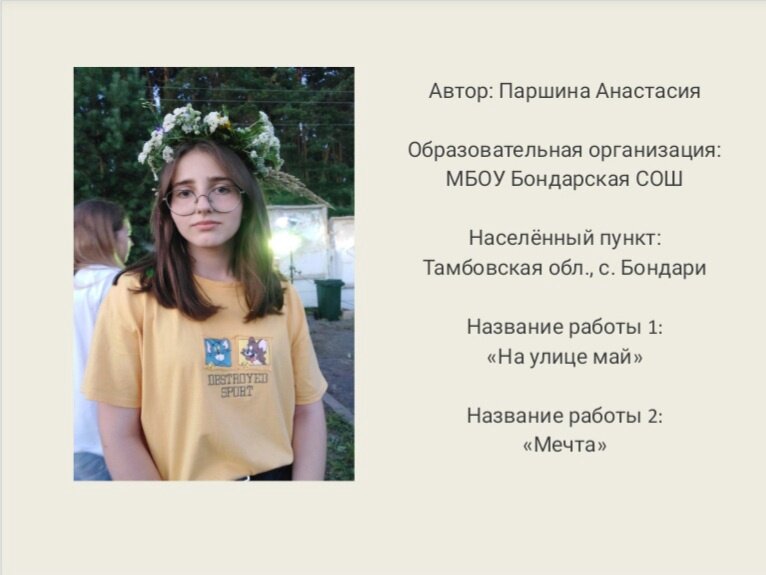 Всероссийская креативная олимпиада «Арт-Успех» в рамках Всероссийской Большой олимпиады «Искусство - Технологии - Спорт» Направление «Искусство» 2022 год Муниципальный этап Паршина Анастасия Ивановна, 8 А класс МБОУ Бондарская СОШ Арт-трек "Книжная полка": Авторская книга