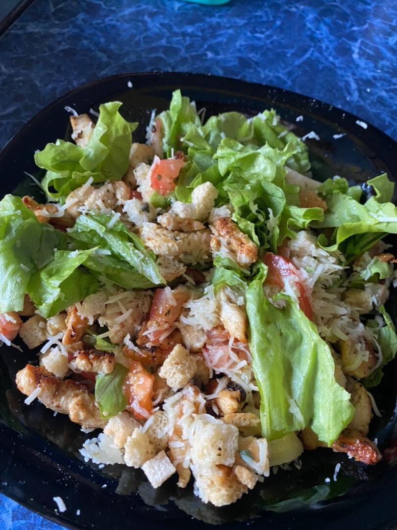 Салат «цезарь» очень популярен, практически в каждом ресторане вы можете попробовать его на вкус, но с вам предлагать приготовить салат в домашних условиях по моему рецепту. Ингредиенты: куриного филе 🍗, твёрдого сыра 🧀, помидор 🍅, сухарики для салатов 🍞, листья салата 🥬, соль🧂, приправы (итальянские травы, приправа для курицы) 🥬🍗, приправа для салата Цезарь 🥗 Способ приготовления: Подготовьте продукты. Куриное филе нарезаем на тонкие соломки. На разогретую сковородку наливаем подсолнечное масло и добавляем куриное филе. Солим, посыпаем приправами. Пока курица обжаривается, моем и нарезаем помидоры на тонкие соломки, сыр натираем на мелкой тёрке. Листья салата промываем и нарезаем на средние кусочки. Начинаем раскладывать продукты. Сперва в тарелку кладём листья салата. Потом к ним добавляем помидоры. Потом в тарелку отправляется сочную курочку. Добавляем сухарики. И в конце посыпаем всё сыром и соусом. Всё перемешиваем. Цезарь с курицей готов!! Приятного аппетита 😋
