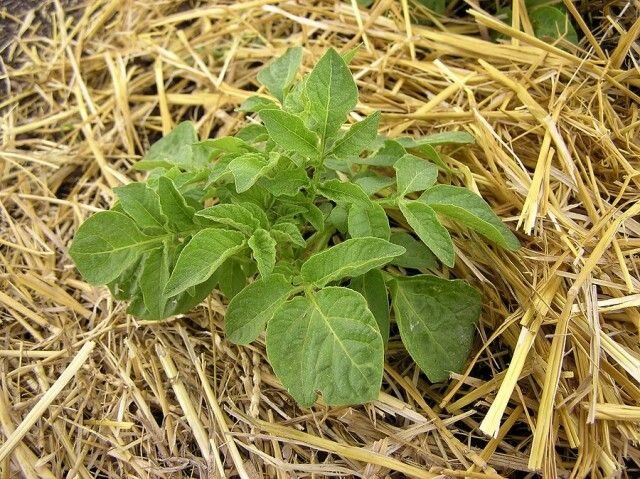 Чтобы облегчить себе труд, огородники пробует разные техники посадки и последующего ухода за овощными, плодовыми и декоративными культурами. Неплохо зарекомендовал себя метод посадки в солому овощей, в том числе картофеля. Технология посадки картофеля в солому Земля для посадки должна быть очищена от сорняков, хотя глубокая перекопка и рыхление необязательны. Осенью можно посеять сидераты, которые одновременно и помогут в борьбе с сорняками, и станут хорошими предшественниками для картофеля. С прогревом почвы до 10-13°С грядки обильно поливают и выкладывают на них посадочный материал ростками вверх. Вокруг картофелин присыпают древесной золой, затем укрывают грунтом, а поверх него - 30-50-сантиметровым слоем соломы. Уход за посадками Данный способ избавляет от необходимости прополки, рыхления и окучивания, огороднику потребуется только полив. Состояние почвы определяют, сунув руку под укрытие, где должно быть достаточно влаги и тепла, но не жара. Молодой картофель будет готов к сбор