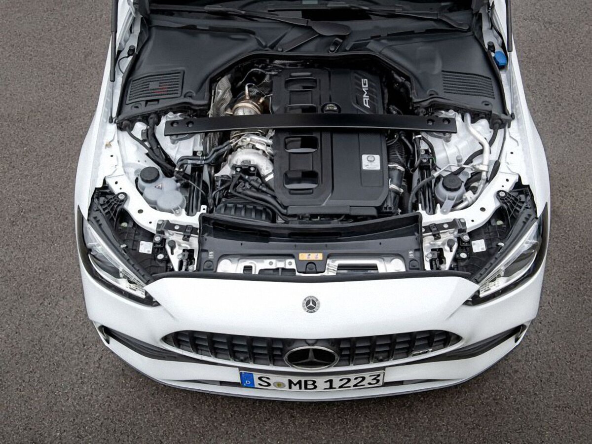 Mercedes-AMG представил новый C 43 4matic с непростой и всего лишь двухлитровой бензиновой четверкой под капотом. В ней применили электрический турбонаддув, позаимствовав технологию из Формулы 1. Суть её заключается в том, что для ускорения набора давления наддува при малых оборотах двигателя, колесо турбокомпрессора дополнительно раскручивается компактным, но весьма мощным электромотором, для работы которого потребовалась 48-вольтовая бортовая сеть. В результате из 1991 кубика извлекают мощь 408 лошадок при 6750 оборотах и максимальный крутящий момент в 500 ньютонометров при 5000 об/мин. Но и этого разработчикам показалось недостаточно: стартер-генератор с ременным приводом добавляет при резком разгоне еще 14 л.с. Короче: мало владельцу не покажется, ведь седан массой 1765 кило набирает первую сотню всего за 4,6 секунды! Есть и версия T в кузове универсал. Она весит на 45 кг больше и потому на целую десятую секунды медлительнее. Ну, «сарай» он и есть «сарай». Максимальная скорость о