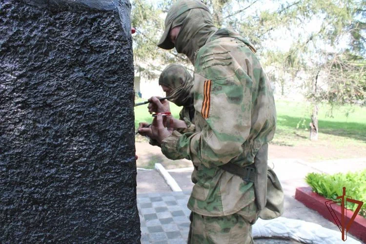 Спецназовцы обновили краску на фасадах памятников и гранитных плитах, провели их косметический ремонт, уборку прилегающих территорий и высадили цветы на клумбах. Когда работы по восстановлению мемориалов были завершены, росгвардейцы возложили венки и почтили память павших минутой молчания. Местным жителям военнослужащие раздали георгиевские ленточки.