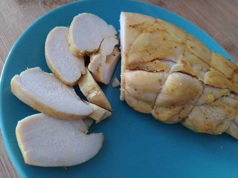 #домавкуснее #пикник Очень нежное и сочное мясо Использовать можно филе индейки или любое другое филе, но чем больше кусок, время надо немного увеличить Ингредиенты: Филе куриной грудки, Соли, Воды , Оливкового масла, Паприка, Чеснок сушёный , Аджика сухая, Куркума, Или любые другие специи по желанию Способ приготовления: 1). В ёмкости смешать воду и соль, до растворения соли. Филе промыть и положить в рассол. Накрыть крышкой и убрать в холодильник на 6 - 10 часов или на ночь. 2). Филе просушить. В мисочке смешать масло со специями. Обмазать смесью филе. Соединить оба филе и обвязать нитью. Оставить мариноваться на 30 - 40 минут. Если есть шкурка, накрыть филе ею. Духовку разогреть до максимума 230-250 градусов. Запекать филе 15-18 минут. Через 10 минут, снять шкурку. Выключить духовку и оставить мясо до полного остывания. #Приятногоаппетита!