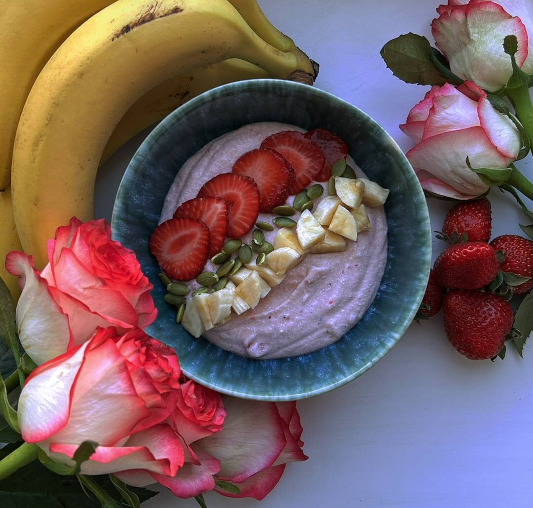 Творог - полезно, но пресно. А вот смузи боул такой же полезный, но еще и вкусный, красивый, презентабельный. Предлагаю вашему вниманию творожный смузи боул «банан-клубника» без добавления сахара! Такое лакомство можно и нужно худеющим, тем, кто на пп и детям. #смузи #смузибоул #боул #клубника #банан #тыквенныесемечки #пп #детям #безсахара #бездобавлениясахара #худеющим #правильноепитание #перекус #фрукты #ягоды #быстровкусно #десерт #простыблюда #за5минут #москва #россия #весна Ингредиенты: пастообразного творога 9%, банан, клубники, тыквенные семечки Способ приготовления: Помойте тщательно клубнику и залейте ее водой с 1 ст л соли на 10 минут. Потом снова промойте водой, удалите плодоножки и отложите пару клубничек для украшения, а остальное опустите в блендер вместе с творогом и очищенным бананом. Тщательно взбейте и выложите массу в красивую тарелку боул. Нарежьте отложенную клубнику пластами, а кусочек банана маленькими кубиками. Украсите поочередно массу фруктами и тыквенными сем