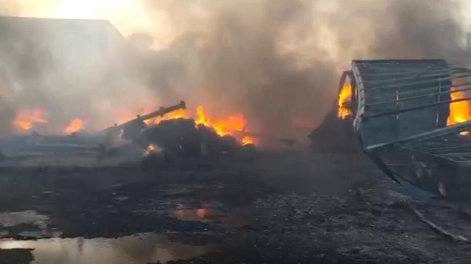 Пожарные потушили загоревшиеся ангары в Ивановской области