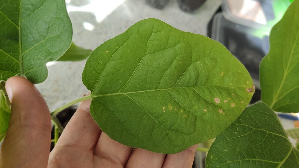 Обычно на этапе рассады вредители у меня не появляются. Комнатные растения новые я не покупаю. А с ними очень легко принести в дом трипса или другую заразу. Единственное, откуда могут появиться вредители - это грунт. Личинки, отложенные в земле, просыпаются и начинают свой жизненный путь. Как распознать появление вредителей Чаще всего на рассаде появляются цветочные трипсы. Чтобы понять, что с растением, нужно провести осмотр листьев. В этом году у меня рассада баклажанов подверглась нападению. Сначала я увидела, что листья стали желтоватыми. Я подумала, что скорее всего растения стоят на солнце и немного поджарились. И не придала этому значения. Такое бывает. Потом я увидела, что на листьях появились пятна, похожие на солнечные ожоги и снова не придала значение, а убрала баклажаны с подоконника. Спустя два дня небольших пятен стало больше и я все-таки провела осмотр листьев и обнаружила маленькие, светло-желтые личинки около 1 мм в длину. По описанию я поняла, что это личинки трипсов,