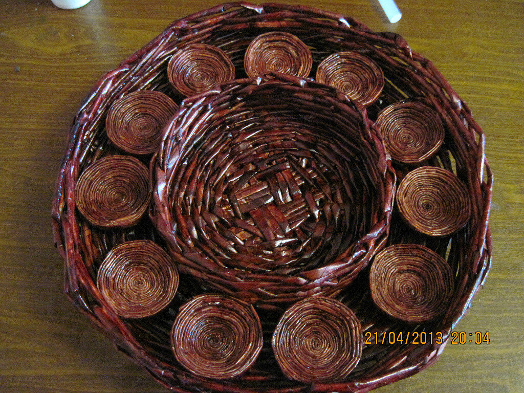 Сколько себя помню, я всегда вязала, вышивала, рисовала, лепила из глины, соленого теста, плела изделия из бумажной лозы, делала топиарии, мне всё интересно. Сегодня покажу одно из моих увлечений - плетение из бумажной лозы. Увидев в интернете изделия из бумажных трубочек мне тоже захотелось попробовать что-нибудь сплести. Накрутила трубочек и даже наплела самых простых корзиночек-вазочек, но вот в увлечение это не переросло, всё таки больше всего люблю вязать)) Фотографий осталось мало, готовых работ тоже, всё раздарено и даже что то продано)) И ещё несколько работ, корзинка в виде курочки "жива" у меня до сих пор)) Я считаю, что абсолютно у каждого человека, не зависимо от возраста должно быть любимое занятие, которое открывает в каждом человеке лучшие качества, заставляет его шагать вперёд, развиваться как умственно, так и оттачивать свои навык на физическом уровне и приобретать новые умения)) Рада всем кто зашёл, читал, огромное спасибо тем, кто комментировал)) Подписывайтесь на