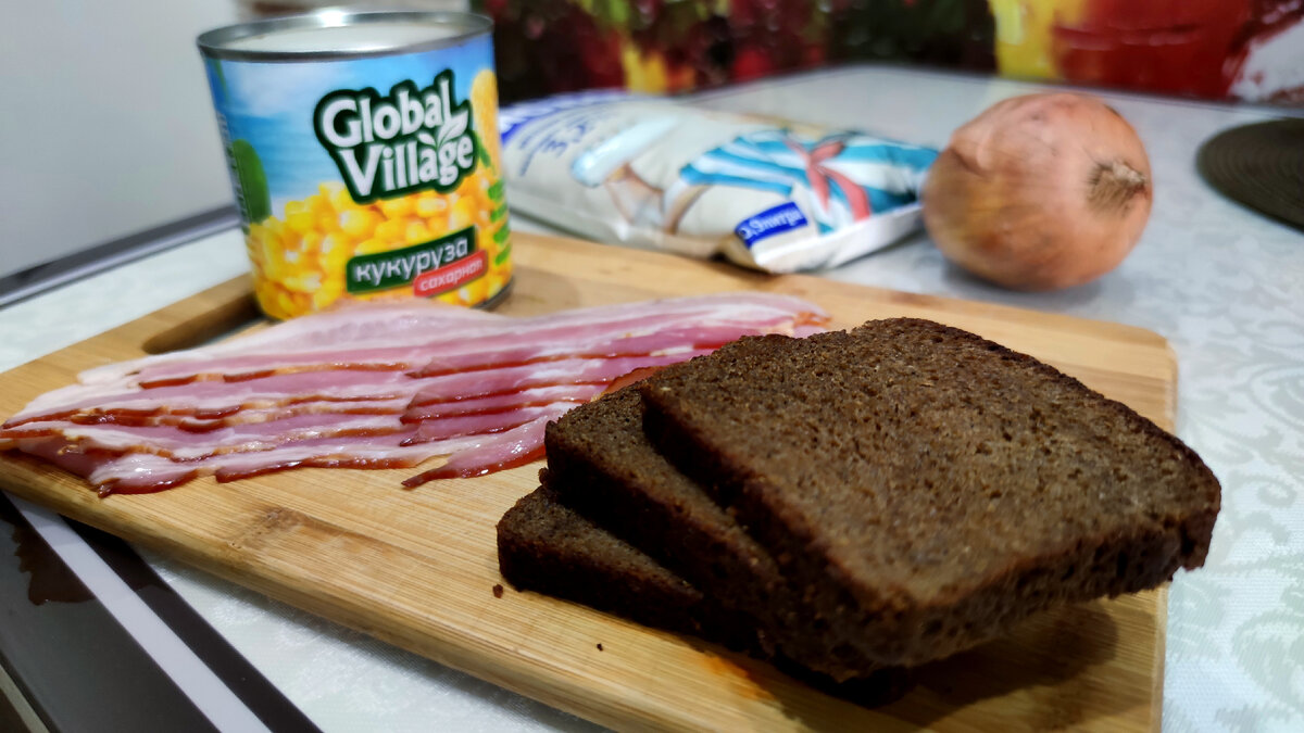 Молочный суп. Какие ассоциации с этим словосочетанием? Вермишель, молоко. Молоко пригорело, на супе противная плёнка. Фу. Лучше сало. Именно так я думал каждый раз, когда речь заходила о молочном супе. Но на днях один постоянный читатель решил поделиться супер быстрым, вкусным и сытным рецептом МОЛОЧНОГО супа. Для этого рецепта понадобится: Лук репчатый Банка консервированной кукурузы Литр молока Бекон для нажористости Черный хлеб для сухариков Немного зелени для украшения Специи: соль, паприка, чеснок гранулированный В самом начале нужно порезать хлеб и сделать из него сухарики. Это очень просто. Духовку разогреваем до 180°С, хлеб смешиваем с маслом, солью и любимыми приправами. В моём случае это чеснок. И отправляем в духовку на минут 7. Тем временем можно обжарить репчатый лук до прозрачного состояния. Лучше жарить на сливочном масле, так вкуснее, но у меня осталось только шоколадное, поэтому использовал обычное, подсолнечное. К обжаренному луку добавляем кукурузу и бек