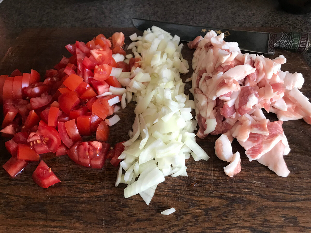Вот за что люблю настоящие выходные, это что можно с самого утра готовить прямо на костре и никуда не ехать) Вашему вниманию вкусный и сытный завтрак. Его величество садж на огонь. Пока он разогревается, нарезаю хороший кусок сальца на небольшие и на огонь. Вытапливаю жирок, на котором и буду готовить, главное не пересушить шкварки) Добавляю нарезанную головку лука, чуть все это обжариваю, помидорки и почти сразу разбиваю яйца. Соль, перец и небольшой огонь. Можно на пару минут накрыть крышкой, чтобы сверху тоже «пропеклось». Сверху можно посыпать зелёным лучком, но сфотографировать не успел, все съели 😂😂😂 Приятного завтрака и хорошего дня 😉 #вкуснопожрать #grille #науглях #denis_kot_garage #kot_garage #люблюпоесть #люблюпоестьапоестьлюбитменя #люблюпожратьапожратьлюбитменя #ничегонезнаюзаконныйвыходной #bykot