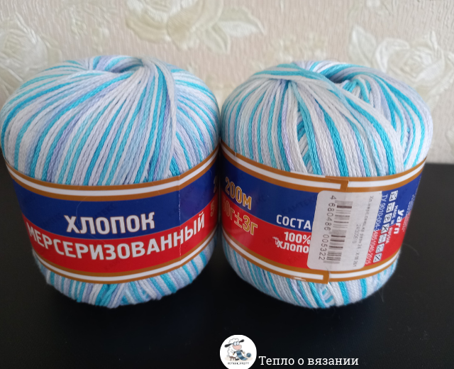 Летом домашние запасы из хлопка вырастают в геометрической прогрессии. То откроешь для себя новый артикул, то вспомнишь давно забытый отличный хлопок, а он окажется по приятной цене... Иногда для этого даже в магазин пряжи заходить не надо. Зайдёшь на мини-рынок за хлебушком, увидишь яркие этикетки на витринах расположенного по соседству отдела пряжи (никогда в нём ничего не покупаю, очень дорого — на 30-40% дороже, чем в обычных магазинах пряжи). Подойдёшь просто узнать, о чём речь. А там скидка 40% на весь российский хлопок. В мае! Когда всё только начинается! Пришлось к булке урожайного докупить 3 мотка мерсеризованного хлопка от "Камтекс" Почему всего 3? Потому, что покупка спонтанная. Примерно столько (600 метров) "тянет" летняя майка без рукавов, туника. Один моток в 50 граммов мне обошёлся со скидкой в 81,6 руб. Я и раньше эту пряжу по такой цене не видела. Производитель советует вязать спицами № 2-4 или крючком такой же толщины (2-4 мм). Я начала с самых тонких спиц, с "двойки"