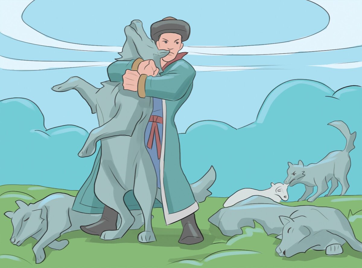 Всю жизнь Чемид-Чудзин пас овец своего соседа – богача Чанара. Верой и правдой ему служил. И вот однажды напали на стадо волки. Чемид-Чудзин храбро бросился на них. Голыми руками передушил почти всех. Но один волк всё-таки сбежал и уволок ягнёнка.