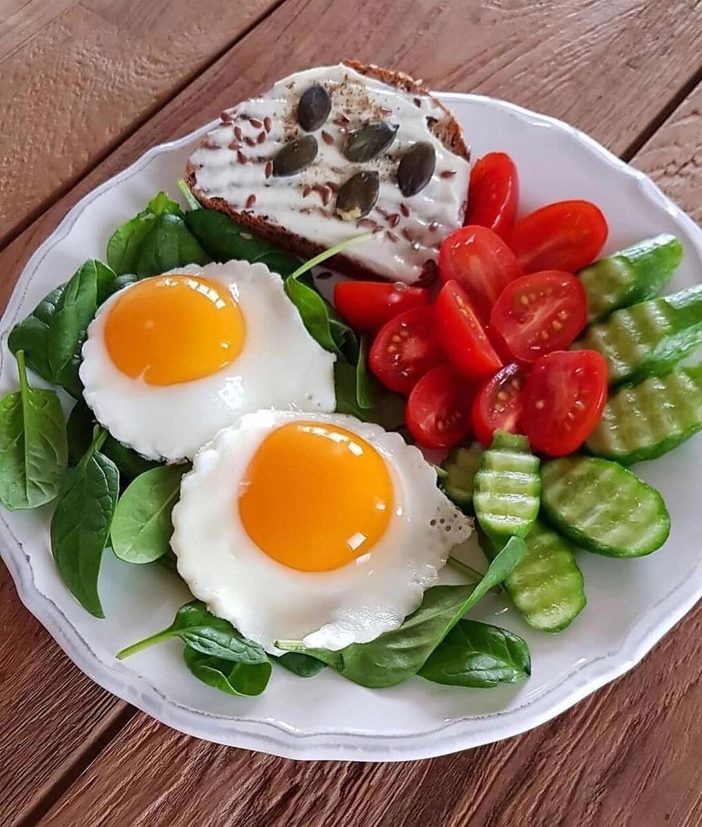 Какой себе выберешь? 1, 2, 3, 4 или 5? 1⃣ Ленивые вареники. творог - 350г 1 яйцо 3ст.лож.муки (+/-) щепотка соли 1ч.лож.сливочного масла ◽️Замесить тесто в миске. Отщипывая по немногу тесто, скатать шарики. Отварить в подсоленной воде пару минут после всплывания. Количество муки в рецепте зависит от размера яиц и влажности творога. 2⃣ яйцо - 90г ц/з хлеб - 40г сыр творожный - 15г шпинат, помидоры, огурцы соль, перец 3⃣ Запеченые помидоры с куриным филе. помидоры куриное филе (грудка или бедренная часть) яйцо сыр (натереть) соль, перец зелень, чеснок (измельчить) ▫Мясо измельчить ножом, добавить яйцо, соль, перец, чеснок и всё хорошо перемешать. Из помидоров при помощи небольщого ножа и чайной ложки, удалить мякоть. Заполнить подготовленные помидоры начинкой, уложить в форму и запекать 25мин при 180° За 5мин.до готовности слегка посыпать сыром. 4⃣ Творожные блинчики 250г мягкого творога 300мл. молока 3 яйца 150г муки (+/-) 1 ст.лож.растительного