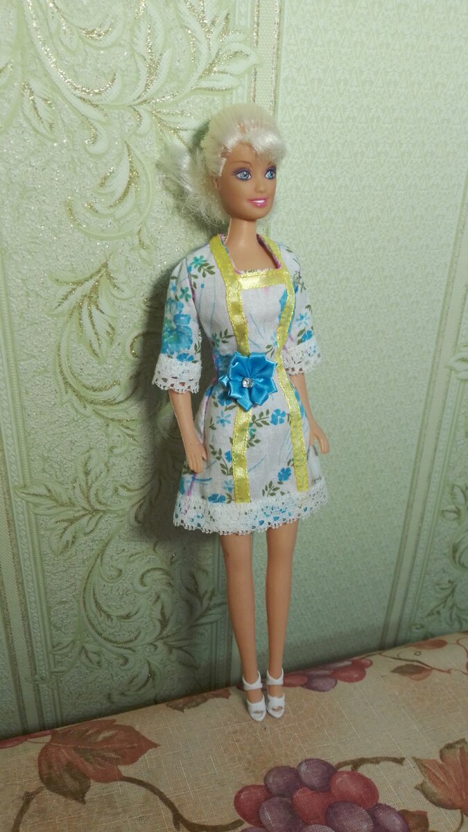 Всем здравствуйте! Я давно уже ничего не выкладывала и вот наступил праздники! Появилось больше времени + ухудшилась погода,и, как результат, я продолжила работу над давно задцмаными проектами. Один из них это легкое платье. Конечно не обошлось без косяков при шитье самого платица. Однако на придумывание его дизайна ушло довольно много времени. Хотела и бордовым рюшем отдать,и голубым... Но остановилась на желтой ленте и голубом цветке. Получилось ,как мне кажется, неплохо. Затем я перешла к своей второй задумке: спортивному костюму. Вообще я его шила на другую модель, однако тело к ней еще не пришло с Джума( хотя должно бы уже прийти). Поэтому одела я его на куклу с модельным молдом. Кроссы тоже застряли на границе с Китаем, поэтому вместо них носочки. Велюровый костюмчик сшит из того же синего велюра,что и несколько других работ( ну много его у меня...). Ну и в завершение шапочка с листиком модного нынче растения. Правда не очень получилось... Но все же шапочка сюда подходит. Ну а д