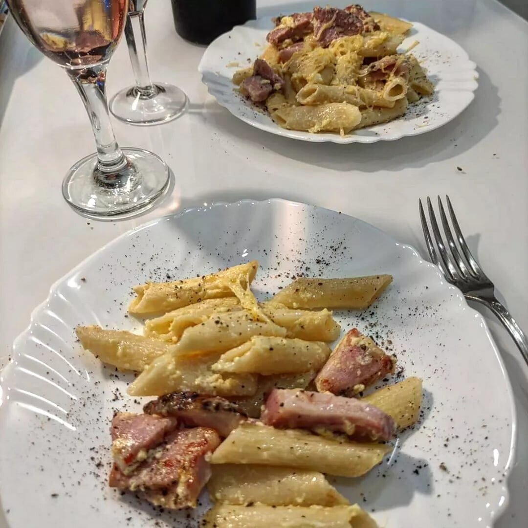 Самая вкусная еда - это простая еда. Секрет - в свежих и качественных продуктах. И да, женщина не должна упахиваться на кухне - поэтому предлагаю приготовить простое и очень вкусное блюдо! Понравится всем гарантированно! И - нет, от макарошек не толстеют! Просто берите изделия из твердых сортов пшеницы и ешьте пасту в первой половине дня - максимум, на обед. И, конечно, любите себя и будьте расслабленны. Да, я использовала не спагетти, но ведь главное - это суть. А изделия можно выбрать любой формы. НАДО: -паста -бекон (вообще -то вяленая щека. А я не люблю все эти штуки - и вообще использовала свиную рульку. Ну вот е могу я на бекон даже смотреть) -3-4 яичных желтка -пармезан ДЕЛАЕМ: 1. Отвариваем спагетти до состояния al dente. Пока они варятся, обжариваем мясной ингредиент до золотистой корочки. Остужаем. Сковорода должна остыть. 2. Желтки взбиваем. Можно добавить в них немного сыра. 3. Готовые горячие спагетти или другую пасту отправляем на сковороду к мясу. Туда же добавляе