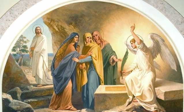 Когда же мироносицы подошли к пещере, увидели, что та оказалась открытой, и стражи не было, как и тела Спасителя. Женщины заплакали, но к ним явился Ангел, сообщивший радостную весть о том, что Христос воскрес!