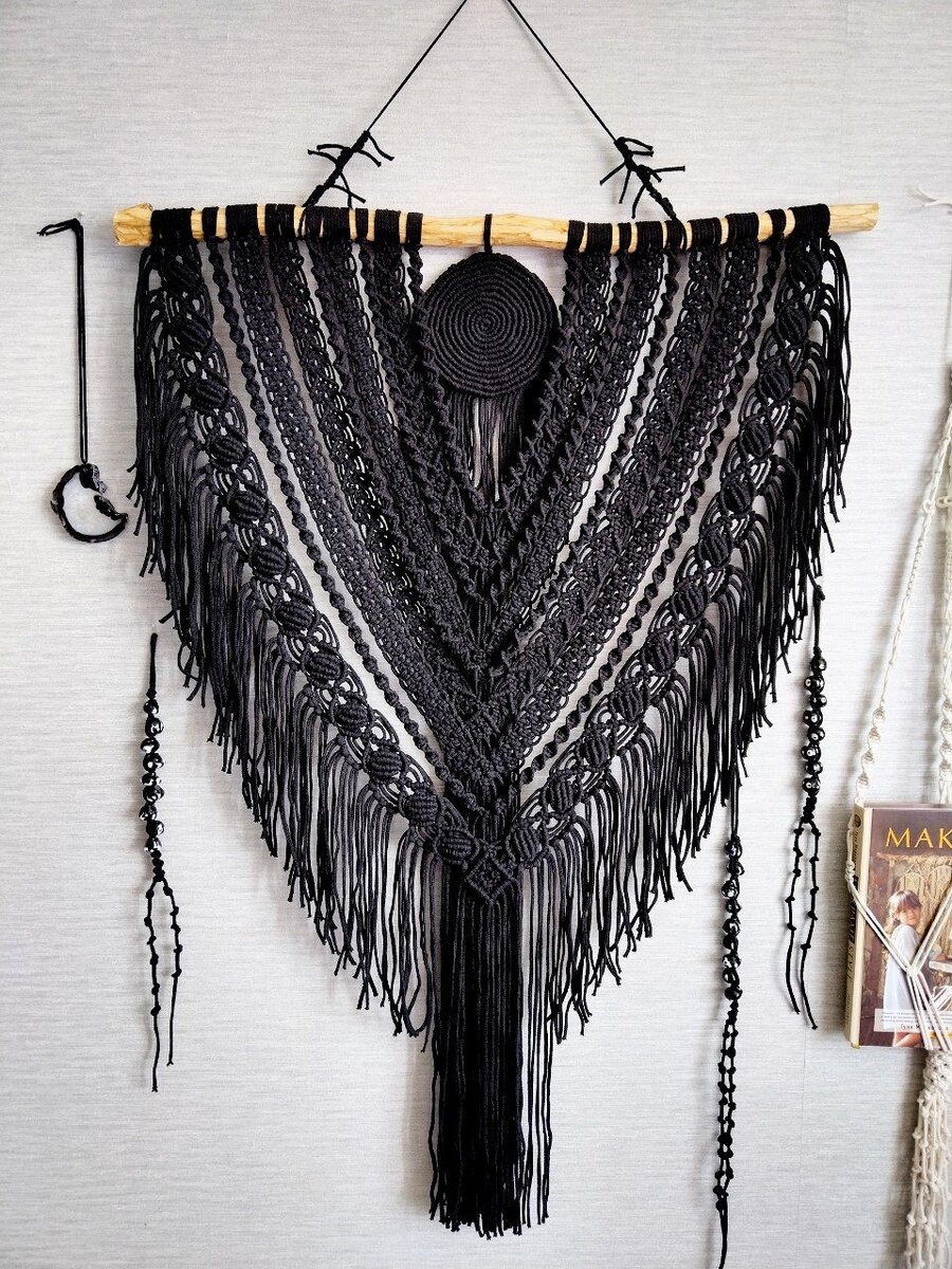 Очень сильно мне захотелось сплести опять большое Черное Панно. И вот такой Брутальный красавчик у меня появился😎😎😎 Ширина 75см Высота 105 Хлопковый шнур. Сплетено на веточке из леса. Я обожаю в черном цвете макраме изделия. И сколько раз плела, всегда быстро находят дом❤️ Сплетено с любовью и вдохновением.