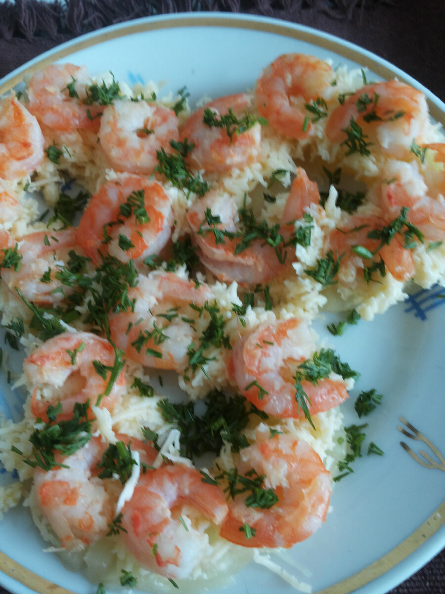 Посмотрите как эффектно смотрится эта закуска! Готовится быстро и просто. Консервированные кольца ананаса промокнуть бумажным полотенцем. Любой твердый сыр потереть, смешать с чесноком и майонезом, выложить на ананасы. Сверху разложить отваренные креветки. Посыпать немного мелкопорезанной зелени. Ну красота же!