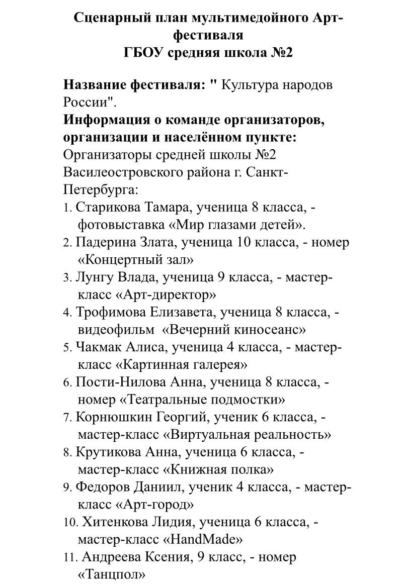 Сценарный план мультимедойного Арт-фестиваля