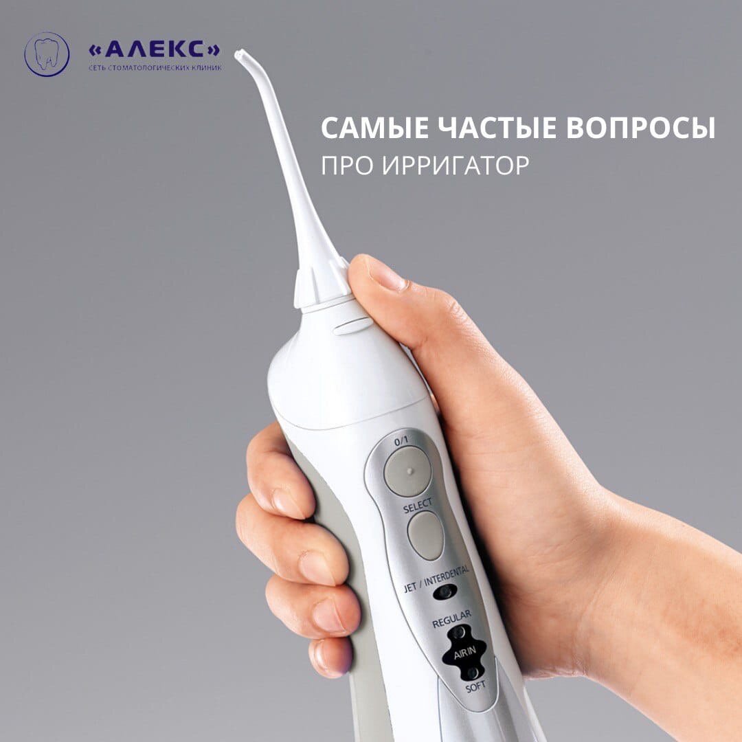 Ирригатор - электрический прибор для лучшего очищения полости рта, в частности дёсен и межзубных промежутков. Ответим на самые частые вопросы о нём: 1)Заменит ли ирригатор зубную щётку Ирригатор - не замена, а дополнение к зубной щётке. Он не способен очистить поверхность эмали так тщательно, как зубная щётка. 2)Когда нужно пользоваться ирригатором: до или после чистки зубов После чистки зубов. Также возможно использование ирригатора после приема пищи. Но не постоянно, иначе можно добиться обратного эффекта - образованию еще больших карманов между зубами, ведь ирригатор работает под давлением. 3)Можно ли заменить раствор для ирригатора обычным ополаскивателем для полости рта Да. Более того, можно заливать туда просто обычную воду. 4)Какую мощность на ирригаторе нужно выставлять Основное правило при использовании ирригатора: «не навреди». Оптимальный напор - тот, при котором не возникает неприятных ощущений во время процедуры. 5)Обязательно ли у каждого члена семьи должна быть своя наса