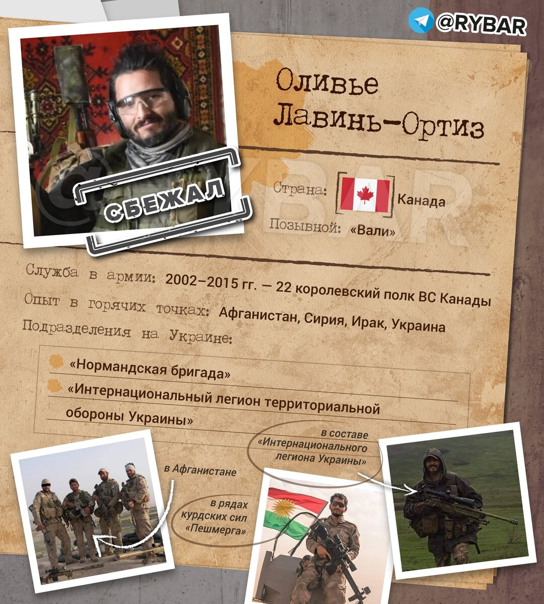 🇨🇦🇺🇦💀 Канадская звезда украинской пропаганды сбежал на родину «Лучший снайпер в мире», «бессмертный солдат» — как только не хвалили украинские СМИ канадского стрелка Оливье Лавинь-Ортиза по прозвищу «Валли», сделав его героем национальной пропаганды и примером для подражания всех иностранных наемников. Однако в мае канадец вернулся домой, и теперь раздает неутешительные для Киева интервью. ▪️В разговоре с La Presse Лавинь-Ортиз признался, что покинул Украину из-за страха за свою жизнь и желания увидеть семью. Последняя операция в рядах «Интернационального легиона» повергла его в шок: в окопе на Донбассе у него на глазах погибли два украинских призывника, разорванные снарядом российского танка. ▪️Валли клянется, что за два месяца боевых действий не убил ни одного российского солдата, никогда не был на передовой и стрелял только по окнам домов, «чтобы напугать противника». Ранее мы писали, что на Украине Валли занимается съёмкой кино, для чего даже открыл ИП. ▪️Канадский наёмник под