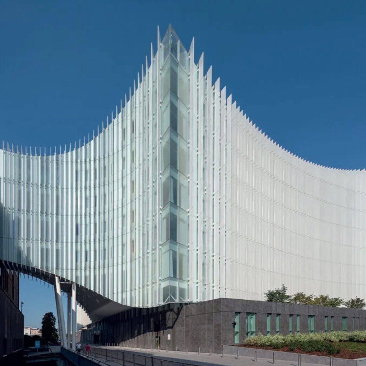 Из-за необычного фасада госпиталь получил название «Айсберг». Разработкой проекта занималось бюро Mario Cucinella Architects. Керамические рёбра на каркасе здания работают подобно жалюзи и частично отсекают прямые солнечные лучи. За каркасом – полностью стеклянный фасад. Сам каркас покрыт диоксидом титана, который позволяет расщеплять частицы смога и сохранять тепло.