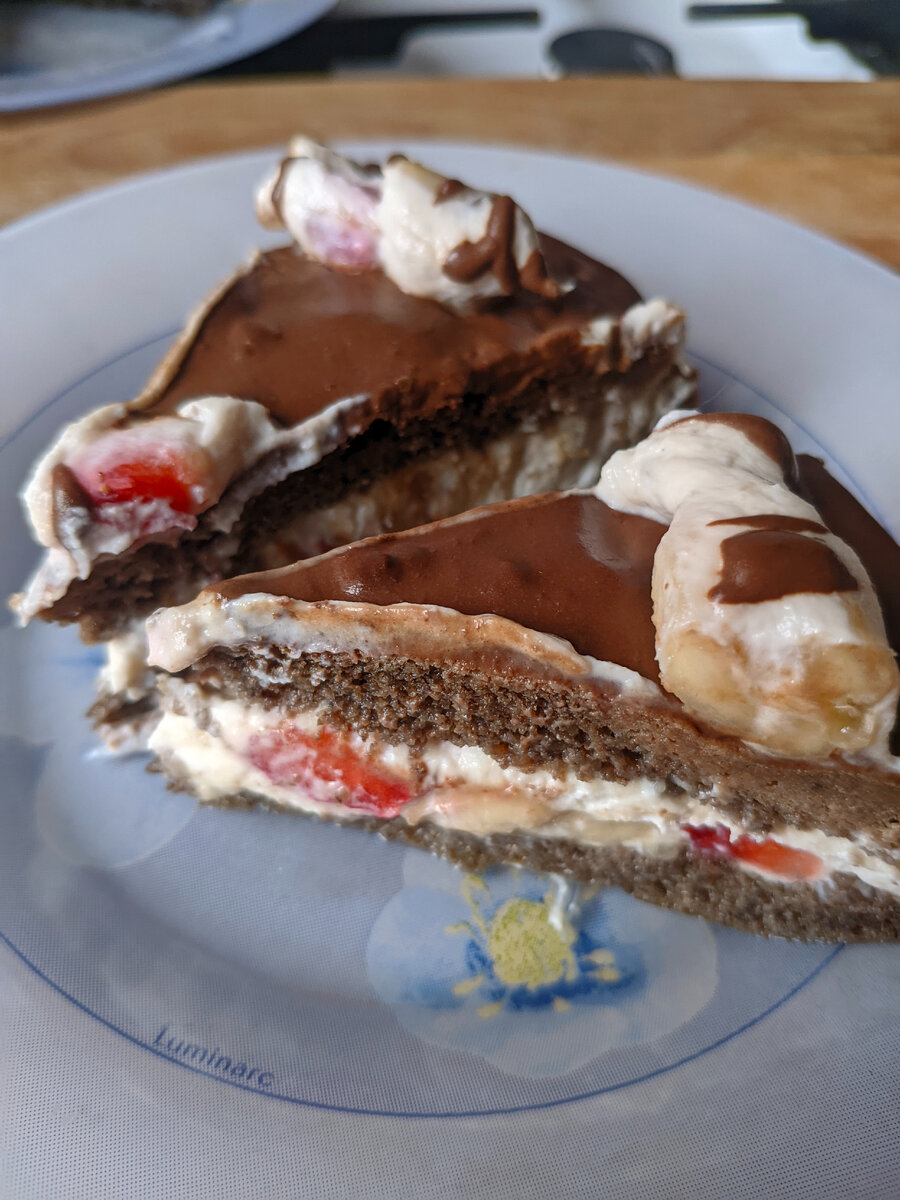 1️⃣Блендером взбиваем все ингредиенты для коржа. Заливаем в формочку удобную Вам. Выпекаем 15-20 мин. при температуре 180°. Студим и разрезаем на 2 коржа. Даём остыть.