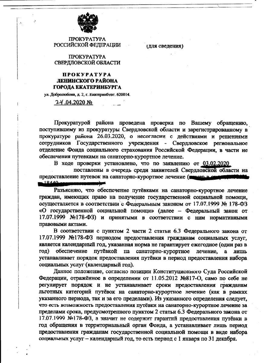 Здравствуйте. Решила доработать публикацию. Кратко об истории получении санаторно-курортной путёвки льготнику. За место под солнцем приходится бороться все возможными средствами разрешённые законом. Порой узнать свои права приходится, только обратившись в Прокуратуру, сразу узнаёшь многое, есть точка опоры с которой можно начинать разбег. С 2020 года много воды убежало и ответов накопилась не мало. Буду по порядку публиковать.