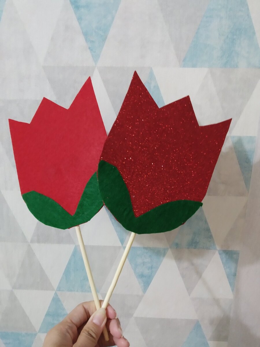 Топеры в форме тюльпанов изготовлены из фоамирана и суши-палочек