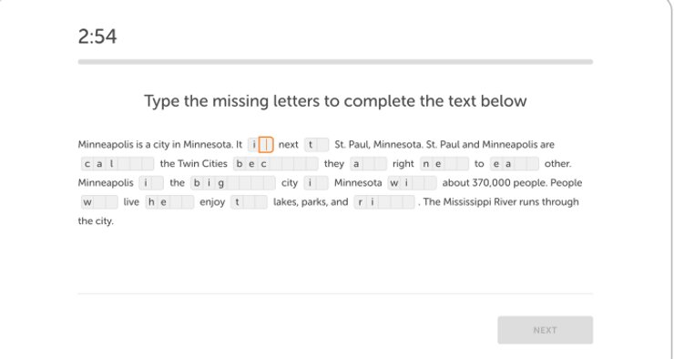 В этом варианте надо будет ответить на заданный вопросс письменно. Не торопитесь нажимать кнопку "Некст", используйте все время до конца. Лучше для вас будет , если ваш ответ окажется более 50 слов. Оставьте время на проверку написанного. Уделите внимание на заглавные буквы, пунктуацию, грамматику. Дуолинго тест принимает написание как британского, так и американского языка. Исключение в Read and Complete question , где используется только американский вариант английского языка.
