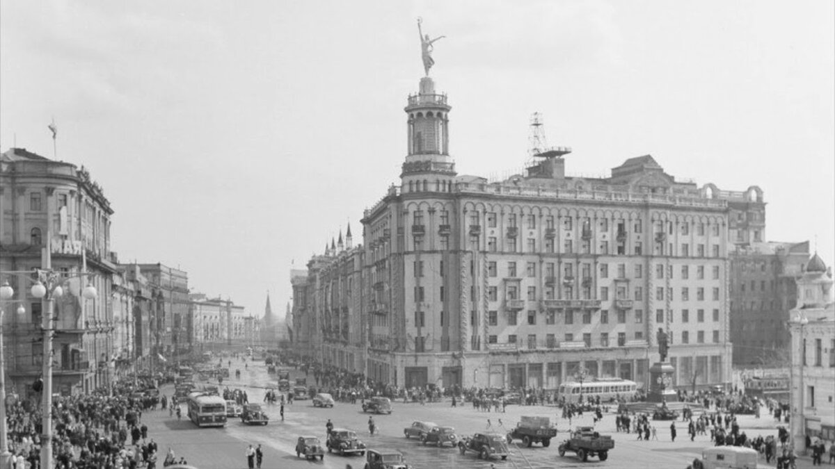 В 2018 году московские общественники и жители дома №17 на Тверской начали активно убеждать власти в необходимости восстановить исторический облик здания. А конкретно – вернуть на место скульптуру «балерины». Молодую женщину в длинном платье, крепко сжимающую правой вытянутой рукой серп и молот, установили на ротонде в 1940 году, но в 1958 демонтировали. Причины для этого оказались банальными. И к политике они вряд ли имели отношение.