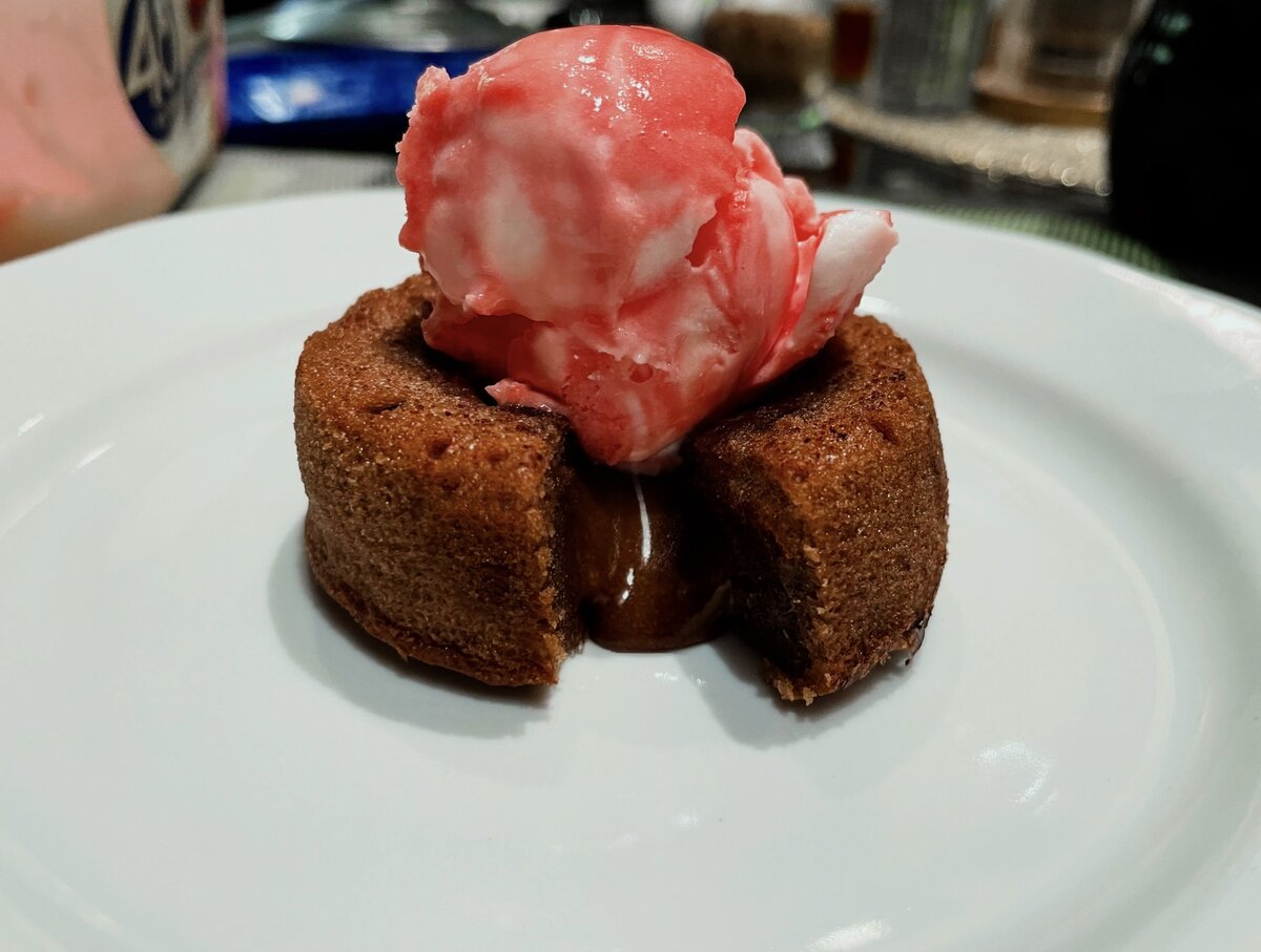 Ингредиенты · Шоколад - 100 гр. · Яйца – 2 шт. · Сливочное масло - 75 гр. · Сахар - 60 гр. · Ванильный сахар – 1 ст.л. · Мука – 50 гр. Приготовление: 1. Шоколад ломаем на небольшие йкусочки, добавляем сливочное масло, также порезанное небольшими кубиками. Далее топим на паровой бане или в микроволновке и перемешать до полной однородности. 2. В другой посуде мы тем временем с помощью миксера или венчика смешать яйца, сахар и можно добавить немного ванильного экстракта или сахара. Сильно взбивать не нужно, главная задача — это всё хорошо смешать и растворить сахар. 3. Растопленной шоколадно-масляной смеси даём немного остыть и вливаем к остальным ингредиентам, когда они уже хорошо смешаются. Снова соединив всё до однородности, добавляем просеянную муку, не переставая смешивать. Перемешать до однородной массы. 4. Формочки для фондана могут быть металлическими, керамическими и силиконовыми. Их лучше смазать сливочным маслом и немного присыпать какао или мукой. Разливаем по ним шо
