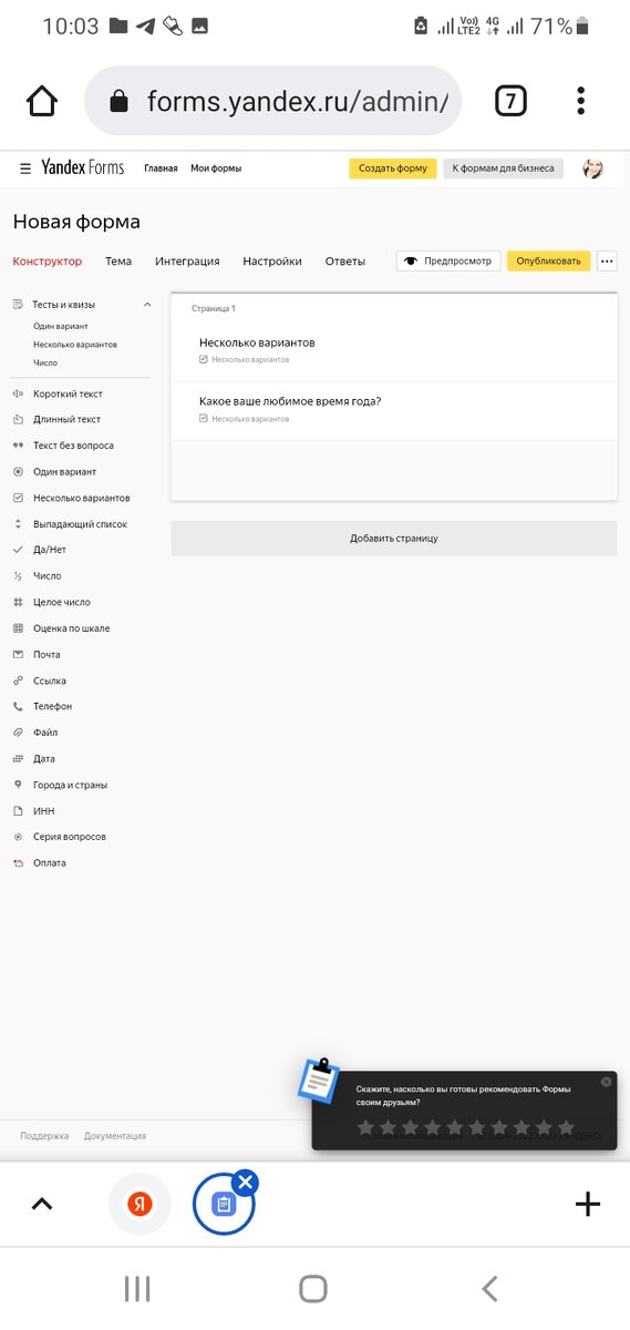 Для начала, ищем в поисковике Яндекс.Формы (Yandex. Forms) Или жми 👉Бесплатный сервис для создания форм. Шаг первый. Нажимаем->попробовать и создать форму(кнопка вверху). Шаг второй. Красным горит вкладка коструктор. Слева из списка выбираем несколько вариантов. Выходит форма, где нужно написать вопрос и варианты ответов. Если нужно загрузить фото. Сохраняем. Шаг третий. Смотрим на верхнюю панель, где красным горит конструктор, только теперь выбираем настройки->тексты и логика отправки. Сверху находим статистику ответов и ставим галочку->показывать статистику ответов после отправки формы. Шаг четвёртый. Вновь верхняя панель. Теперь выбираем интеграция->показывать результат пользователю(ставим галочку). Сохраняем! Шаг пятый. Нажимаем опубликовать. Вместо кнопки опубликовать появляется кнопка поделиться (нажимаем). Появился код для вставки iframe, копируем его! Шаг шестой. Вставляем его в статью. Не забываем вставить обложку, сразу перед опросом. Когда кто-то проходит опрос, вам на