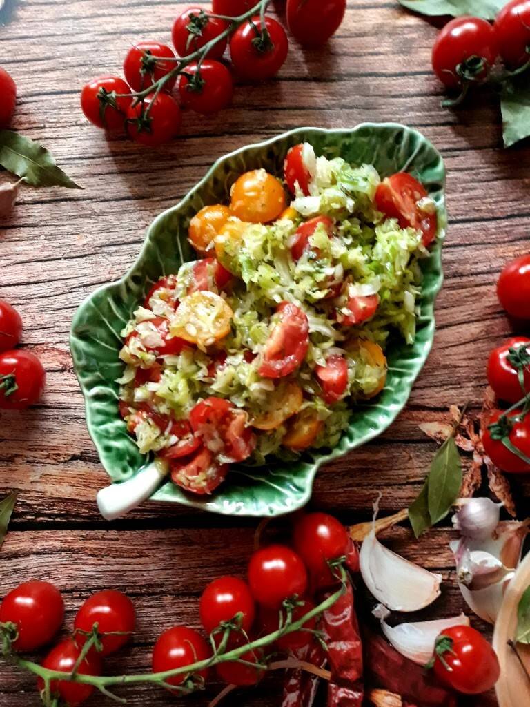 Очень вкусный весенний салатик! 🥗 #пикник #салат #моякухня Ингредиенты: молодой капусты, черри 🍅, зелени (укропа, петрушки, кинзы) 🌱, Соль (у меня розовая)🍙, Уксус 9%, Ароматное подсолнечное масло холодного отжима 🏺 Способ приготовления: Капусту тонко нашинковать, посолить 🍙, хорошо промять руками, чтобы капуста дала сок. Черри 🍅 нарезать половинками или четвертинками. Зелень 🌱 мелко нарезать. Смешать капусту, черри 🍅 и зелень 🌱, заправить уксусом и ароматным подсолнечным маслом 🏺 Приятного аппетита! 🥗