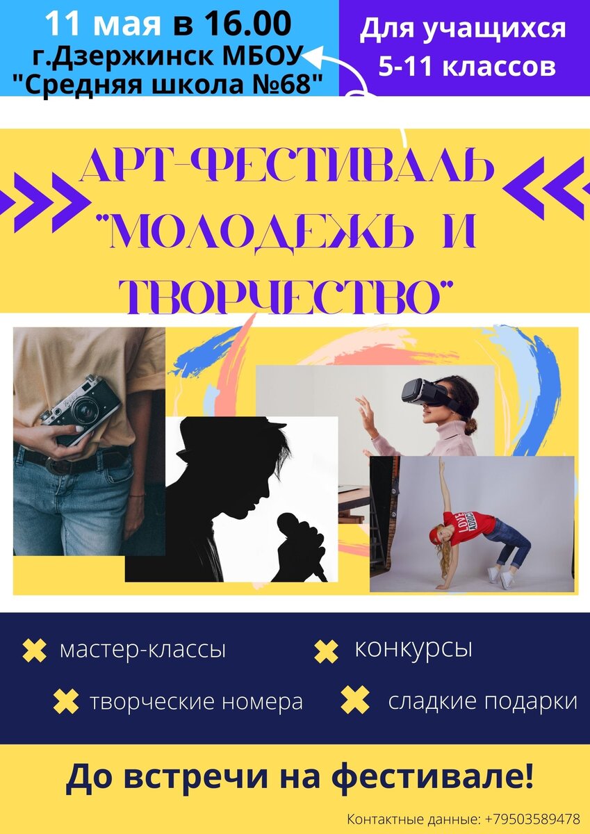 Арт - трек "Арт - директор" Васильева Алёна Александровна Нижегородская область, г. Дзержинск, МБОУ "Средняя школа №68", 8 класс Я создала плакат для призыва на наш арт - фестиваль.