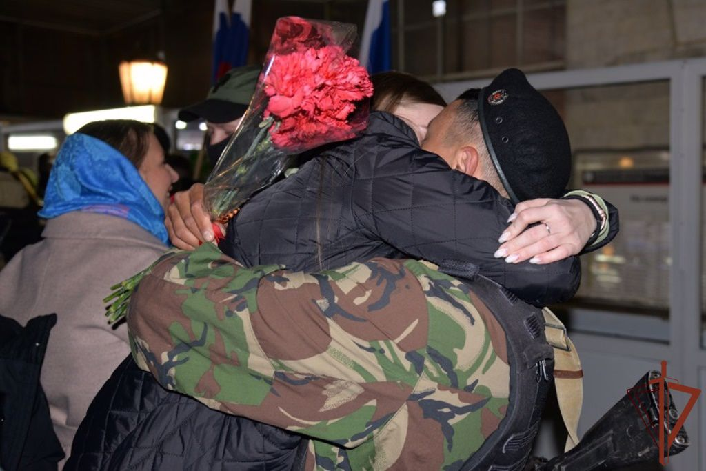 На железнодорожном вокзале Сургута состоялась торжественная встреча бойцов ОМОН «Стерх» Управления Росгвардии по ХМАО – Югре, вернувшихся из служебной командировки по защите мирных жителей Донецкой и Луганской народных республик.