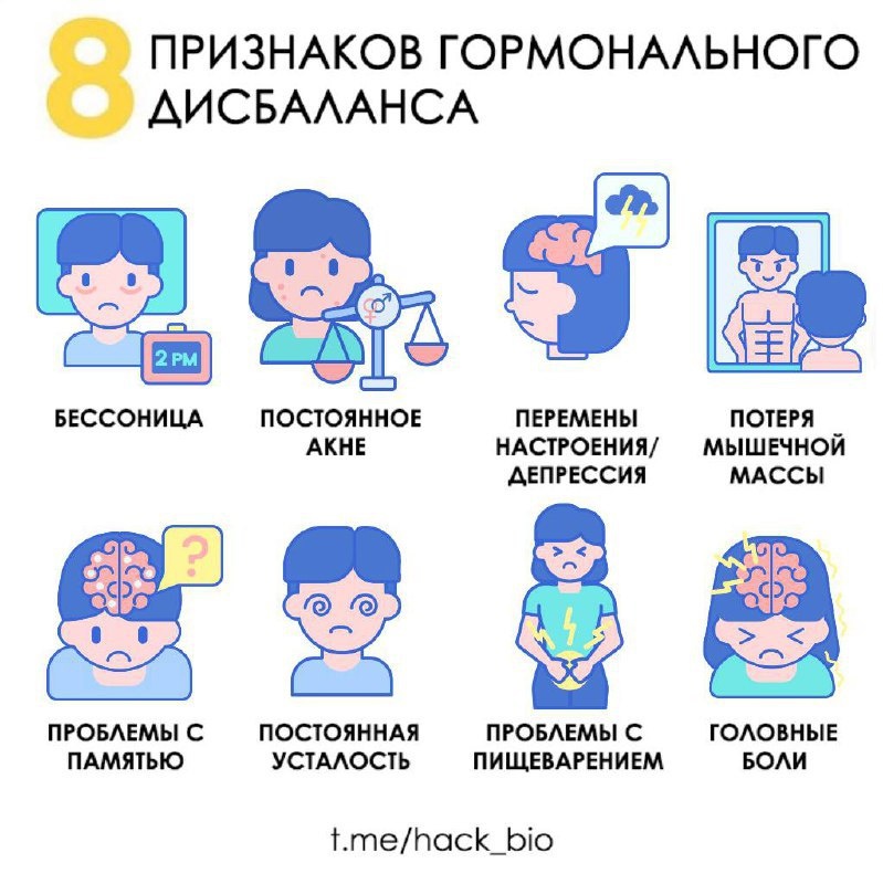 На картинке лишь некоторые симптомы, которые мы можем почувствовать, когда наше гормональное здоровье нарушено.