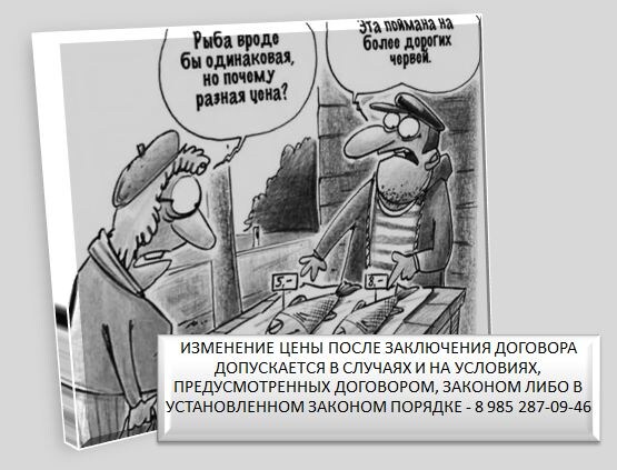 - Изменение цены после заключения договора допускается в случаях и на условиях, предусмотренных договором, законом либо в установленном законом порядке ( п. 2 ст. 424 ГК РФ ).