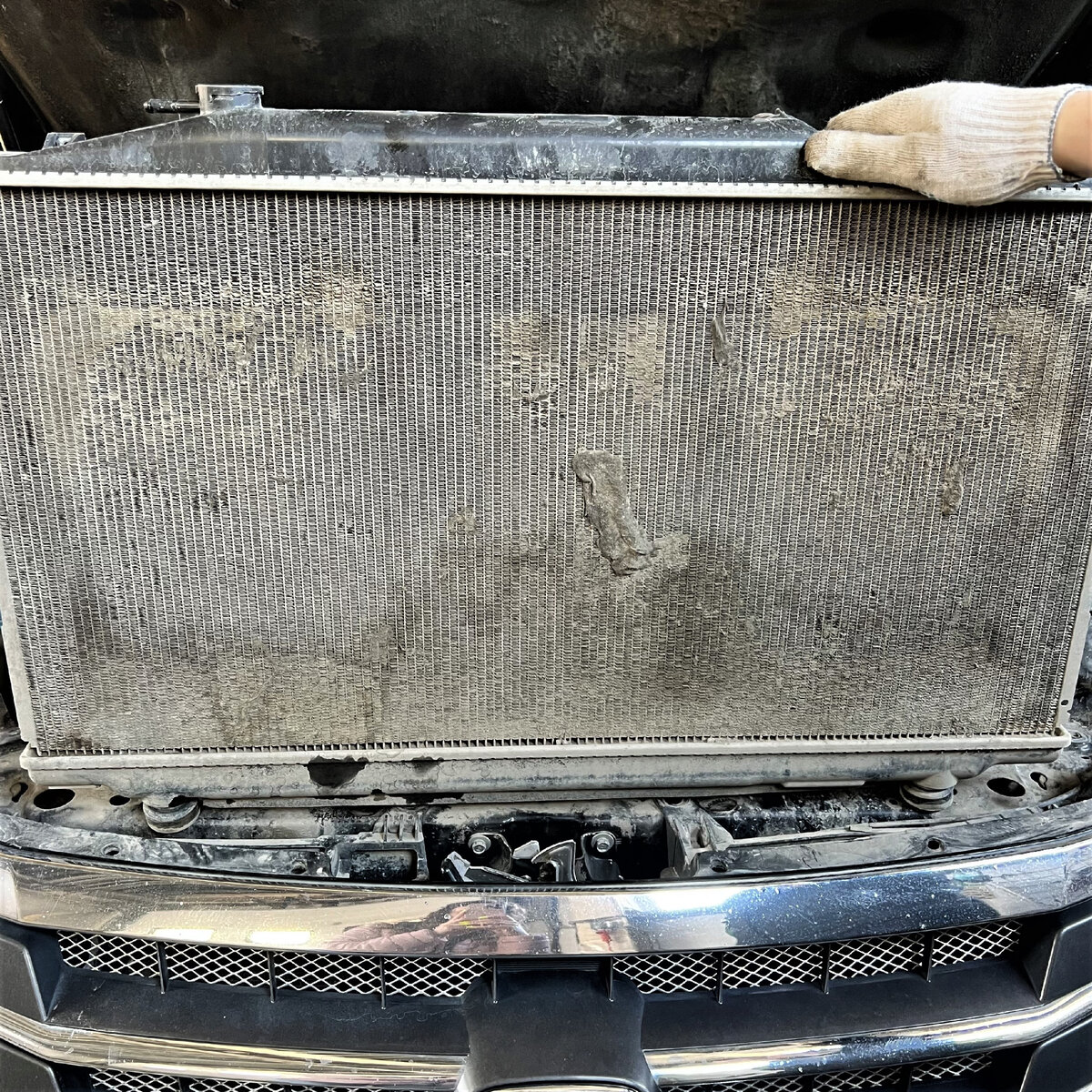 Автомобиль Honda Crosstour 2011 года выпуска с пробегом свыше 165 000 км. Клиент обратился в наш сервис с жалобой на слишком частое срабатывание вентиляторов системы охлаждения, а также на то, что периодически, во избежание критического повышения температуры охлаждающей жидкости, приходится ездить со включённым отопителем салона. Чаще всего, причиной подобной ситуации является загрязнение радиатора, так как скопление пыли и грязи препятствует эффективному отведению тепла. Произведя демонтаж радиатора, мы убедились в этом. Также загрязнение радиатора охлаждения двигателя негативно сказывается на эффективности работы системы кондиционирования. Это обусловлено особенностью расположения элементов системы охлаждения - радиатор кондиционера находится перед основным радиатором, а вентиляторы за радиатором. При загрязнённом радиаторе охлаждения двигателя вентиляторы не могут обеспечить необходимый поток воздуха для эффективного охлаждения радиатора системы кондиционирования. Для восстановлен