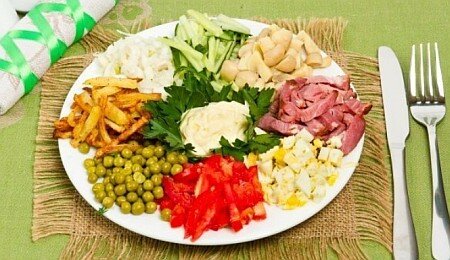 Подписывайтесь на мой канал с рецептами! Продукты, которые нам понадобятся: - 200 грамм ветчины; - 2 картофелины среднего размера; - 200 грамм майонеза; - два огурца; - два помидора; - 200 грамм маринованных грибов; - 100 грамм консервированного горошка; - 1 головка репчатого лука; - 100 мл подсолнечного масла; - Полпучка свежей петрушки; - 3 яйца; - соль по вкусу. Салат "Баба Яга" придется по вкусу всем гостям, разнообразит ваше праздничное меню и порадует глаз яркостью красок. Это один из тех случаев, о которых можно сказать "вкусно и красиво". Это блюдо подходит и для повседневного меню, ведь оно может похвастаться обилием овощей и питательных белков, так необходимых для нормального функционирования всего организма. Существует множество способов приготовления этого оригинального салата. Он может включать в себя самые разнообразные продукты, такие как морковь, свекла, а также множество мясных вариантов. Этот салат можно приготовить с добавлением говядины, телятины, свинины. Можно доб