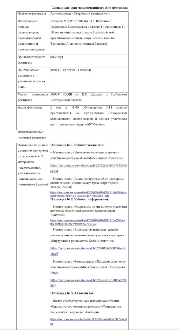 Сценарий план мультимедийного арт-фестиваля