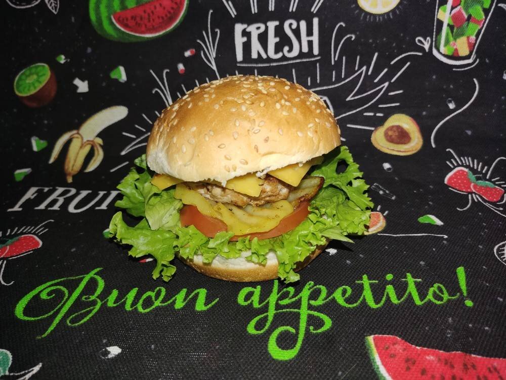 #домавкуснее Ингредиенты: булочки д/гамбургера, огурец свежий длинный, помидор крупный, сыр, котлеты домашние, лист салата, лук репчатый по желанию, майонез, томат. паста Способ приготовления: Я делаю сама фарш. Формируем и жарим котлеты. Булочки разрезаем пополам, майонез смешиваем с томат. пастой. Огурцы и помидоры моем и нарезаем кружочками. Лист салата моем и подгоняем под размер булочки. Лук нарезать кольцами. Сыр нарезать тонкими пластиками. На булочку наносим соус, кладём салат, огурцы, помидор, лук (по желанию), котлету, сыр. Накрываем второй частью булочки и подаём. Дети будут в восторге, вкуснее чем в кафе быстрого питания. Приятного аппетита!!