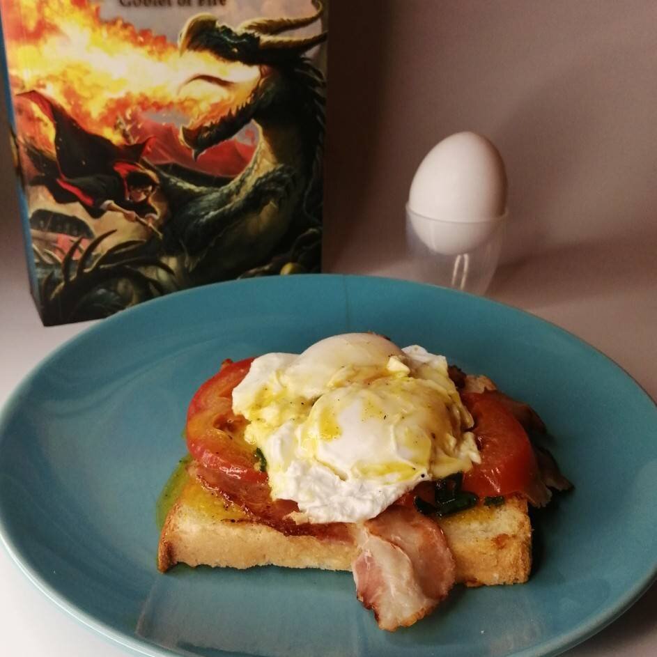 Привет, друзья. Завтрак - самый важный приём пищи, а у нас с вами так мало рецептов для начала продуктивного дня. Поэтому сегодня мы вдохновимся Гарри Поттером и опусти наши драконьи (курица ведь потомок динозавров или драконов?) под воду, и наконец-то услышим чарующие слова и мелодию нашего блюда. "И тут вдруг случилось такое, от чего Гарри дернулся, поскользнулся, выпустил из рук яйцо, и оно, упав на пол, откатилось к стене. — Я бы на твоем месте опустила его в воду, — произнес чей-то голос. От неожиданности Гарри наглотался пены." (Дж. Р. Роулинг - "Гарри Поттер и кубок огня" - глава 25). #готовимвместе Ещё больше рецептов в моем инстаграме @artem_goloden Ингредиенты: яйца, хлеба, помидора, Яичный желток, Сливочного масла, бекона, Винного или яблочного уксуса, Соль, перец Способ приготовления: На сковороде пожарить бекон и помидор. На вытопленном жире подрумянить хлеб с двух сторон. Готовим голландский соус: в кастрюле смешать сливочное масло с желтками, посолить, поперчить, слегка