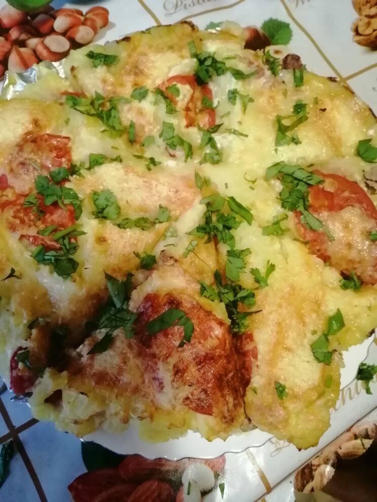 Мясо с картофелем - это всегда вкусно. Но еще более аппетитным этот союз становится в виде румяной и нежной на вкус запеканки из картофельного пюре с измельченной вареной говядиной и луком в качестве начинки. Попробуйте! Ингредиенты: Картофель, Варёная говядина, Помидор, Лук репчатый, Сок лимона, Майонез, Сыр, Сливочное масло Способ приготовления: У меня осталась варёная говядина от приготовления блюда и я решила приготовить нежнейшую запеканку. Очистите картофель, нарежьте крупными кубиками и поместите в кастрюлю. Залейте картофель холодной водой, доведите до кипения и варите 15-20 минут до готовности Затем процедите картофель, добавьте сливочного масла и разомните до состояния однородного пюре. Отварную говядину мелко порубить ножом или прокрутите через мясорубку. Лук порежьте кольцами, сбрызните соком лимона, перемешайте и оставьте промариноваться минут на 10-15. Помидор порежьте кольцами или полукольцами. Сыр натрите на тёрке. В огнеупорную посуду кладём фольгу или пекарскую бумагу