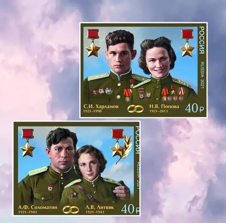 Самые трогательные выпуски марок к 9 мая вышли не сегодня . В изображениях нет пафоса и напыщенности. Нет монументальности и скорби. Но есть то , что прям до слёз трогает. Любовь. Я помню ребенком видела похожее фото на деревянной стене в доме у бабушки. Она в военной форме и дед. Рассказ, как они познакомились, историю их любви в то страшное время , помню. Ранняя осень 1941. Поселок Холм-Жирковский. Немцы уже были на окраинах. Люди покидали дома, уходили в лес. Бабушка и её 3 подруги грелись у костра , когда невдалеке разорвался снаряд, девушки погибли, кроме моей бабушки, ей посекло осколками ноги и контузило. Отступающие наши солдаты наткнулись на неё и полуживую забрали с собой. Мой дед, нёс её на себе много километров. И обещал жениться, если она выживет. Военные врачи совершили чудо. Ноги не ампутировали. Бабушка выжила . Бок о бок они не воевали. Но после войны дед нашел её и сдержал своё слово. Их имена Дроздова Прасковья Даниловна и Дроздов Петр Макарович. Когда увидела э