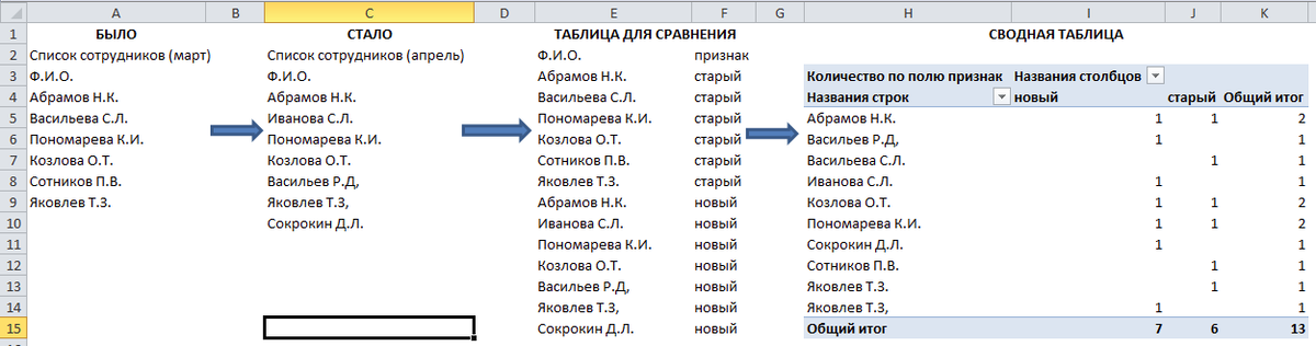 Сверка данных и актуализация списков при помощи сводных таблиц Excel