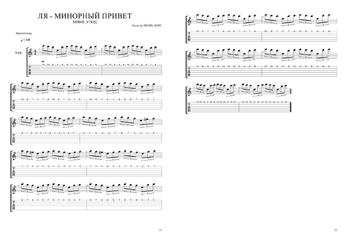 ЛЯ - МИНОРНЫЙ ПРИВЕТ Данный этюд придуман специально нами для отработки упражнения которое мы разбирали в нашем первом выпуске! Теперь у вас есть возможность отрабатывать данное упражнение имея ноты под рукой!