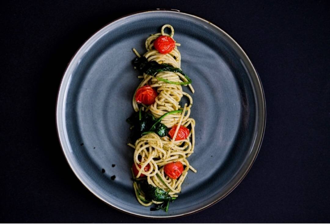 Макароны и паста — родственники, но отличия между ними есть. И то и другое — это мука и вода, но мука это самое важное. Чаще всего макаронами у нас называют пасту, которую делают из недорогой муки мягких сортов, в которой много клейковины. В Италии же настоящая паста всегда производится из муки твердых сортов, хотя она и может быть смешана в разных пропорциях с мягкой. Только пасту с добавлением твердых сортов пшеницы возможно сварить аль денте, «на зубок», до промежуточного состояния между сырым и готовым. С макаронами такое не получится! Ну что же, у нас есть вводные: очень голодные люди, 15 минут времени и не очень обширный продуктовый запас в холодильнике, значит… делаем пасту с потрясающим ароматом чеснока и зелени! Ингредиенты: спагетти (у меня - спагетти Psateroni 114, 10 минут варки до аль данте), воды, томатов Черри, свежего шпината, соус Песто, чеснока, оливковое масло, соль Способ приготовления: У нас есть 15 минут 😀, поэтому первым делом ставим готовиться пасту. В кипящую