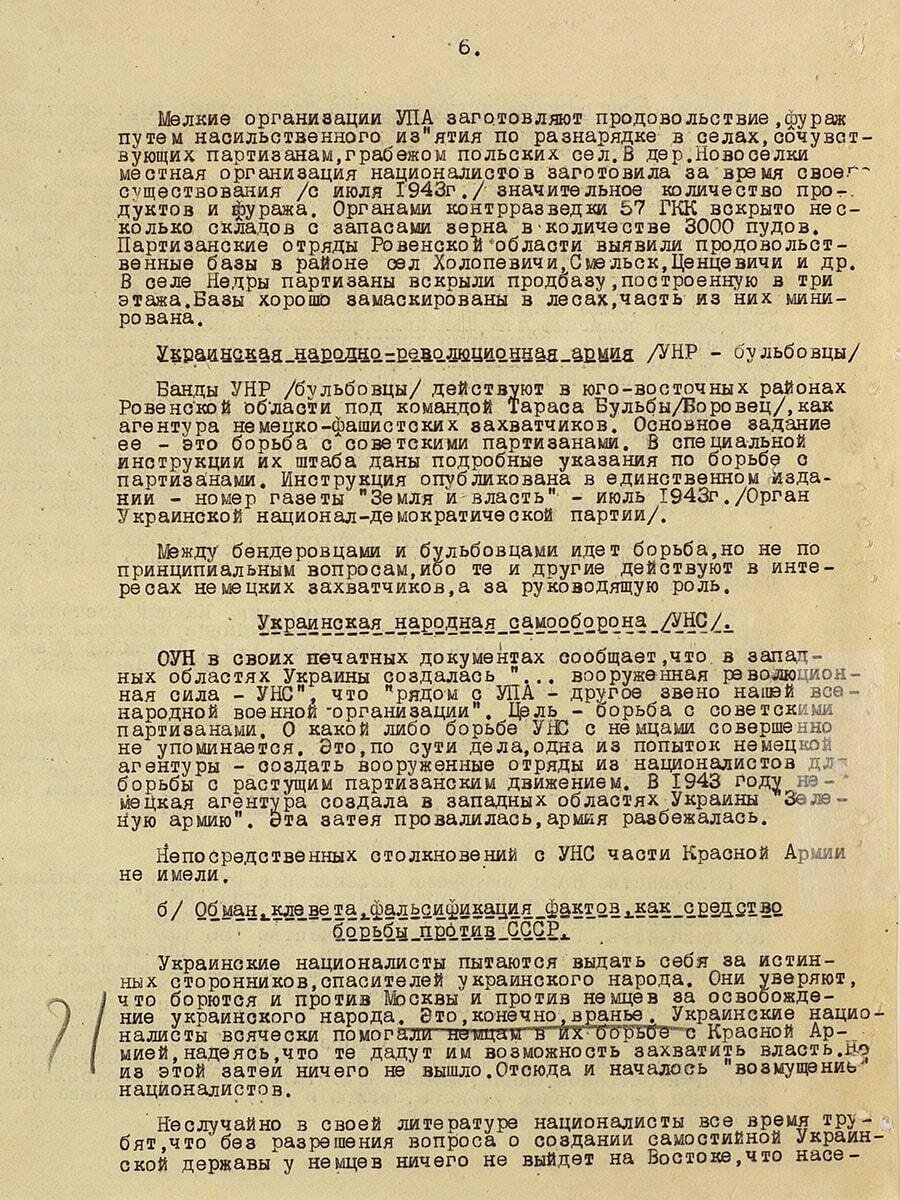 Из докладной записки начальника Управления агитации и пропаганды ГлавПУРККА «О военной контрреволюционной организации украинских националистов в районах западных областей Украины» от 11 апреля 1944 года В первые же дни нападения фашисткой Германии на СССР украинские националисты выступили с призывом оказать помощь немецким захватчикам. В обращении к учителям-украинцам ОУН приветствуют «немецкую армию, наиболее культурную армию мира». Украинские националисты пытаются выдать себя за истинных сторонников, спасителей украинского народа. Они уверяют, что борются и против Москвы, и против немцев за освобождение украинского народа. Это, конечно, вранье. Украинские националисты всячески помогали немцам в их борьбе с Красной Армией, надеясь, что те дадут им возможность захватить власть. Источник: silavpravde.mil.ru #СледственныйКомитет #СКРоссии #СКР #ИЦСКРФ #ИЦСКР #Информационныйцентр #СКРФ #АрхивыПомнятВсё