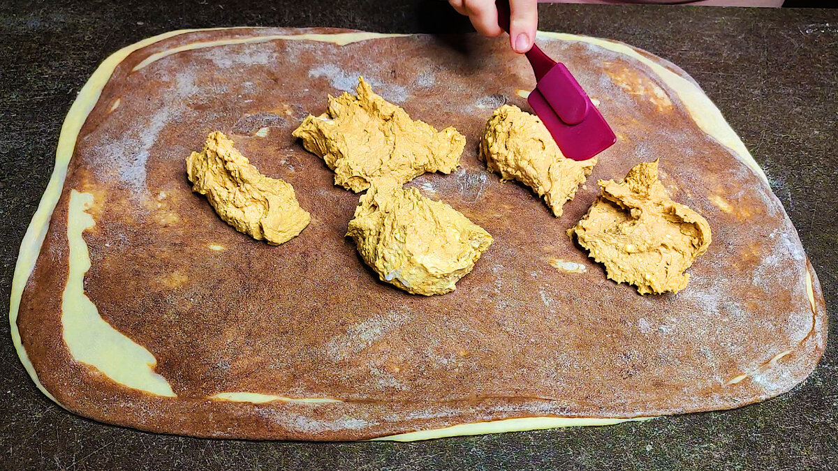 смазать желтком с молоком Способ приготовления: В глубокую миску вливаем теплое молоко , всыпаем сухие дрожжи, сахар, пару ложек муки , перемешать венчиком. Накрываем пищевой пленкой и оставляем на 10-15 минут. В подошедшую опару всыпаем щепотку соли, оставшийся сахар, выливаем мёд, растительное масло, перемешать венчиком. В несколько этапов всыпаем 400 грамм муки и должно получится липкое тесто. Делим тесто на две не равные части, перекладываем одну часть т